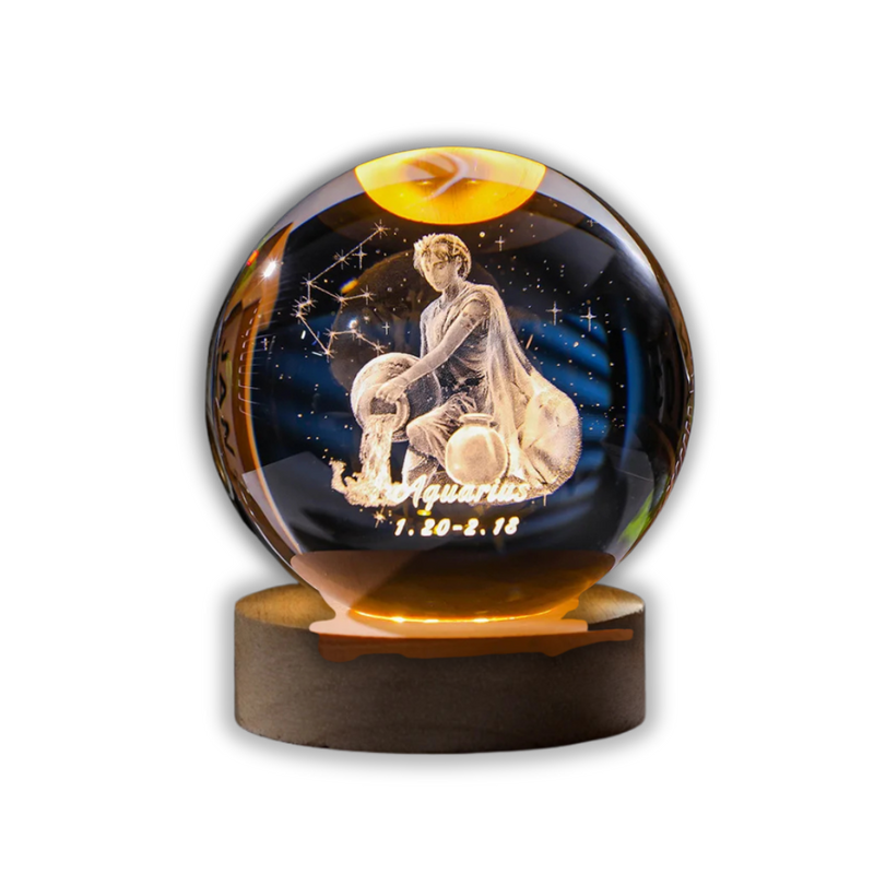 Innovative, independent, and endlessly imaginative—ZenOrb Aquarius captures the futuristic spirit of this air sign in a stunning 3D crystal engraving. Featuring the classic Aquarius water-bearer symbol surrounded by celestial accents, this orb glows with a clean white light, reflecting Aquarius’s love for ideas, progress, and individuality.